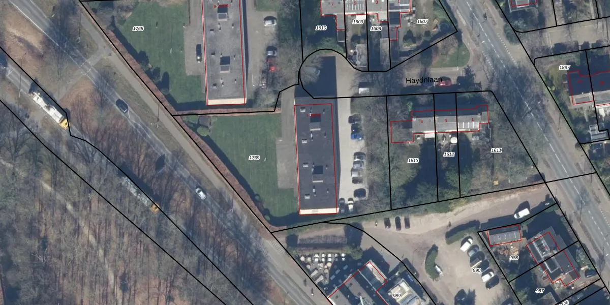 Het perceel waarop Haydnlaan 29-G7 staat heeft een oppervlakte van 2250 m². Dit is een zeer groot perceel. De perceeloppervlakte wordt geregistreerd door het Kadaster. Gedetailleerde informatie over de maten van dit perceel kunt u vinden in het rapport Kadastrale kaart met maatvoering van Haydnlaan 29-G7.