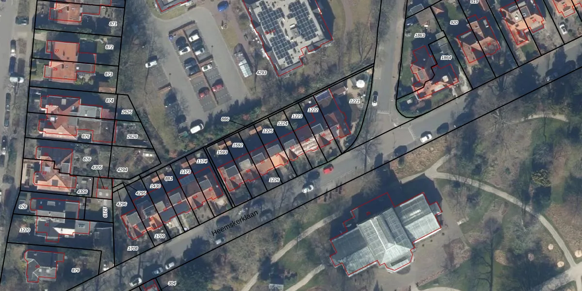 Gebruik de zoekbalk of klik op een perceel voor informatie over de adressen binnen dit perceel.