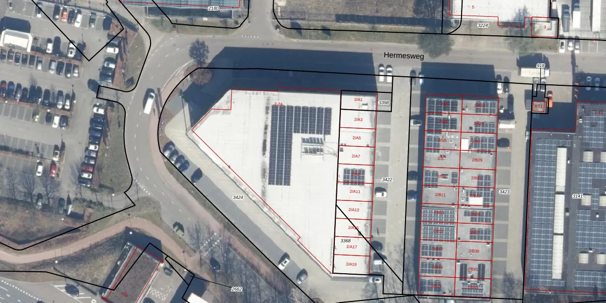 Hermesweg 2-A is gelegen op kadastraal perceel BAA01H3424. Deze kadastrale aanduiding is uniek en wordt gebruikt door het Kadaster om eigendomsrechten en andere zakelijke rechten vast te leggen. Het perceel maakt onderdeel uit van de kadastrale gemeente Baarn.