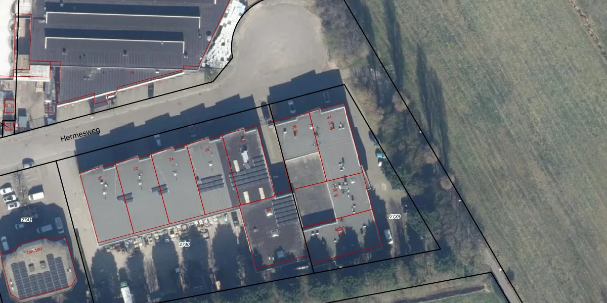 Het perceel waarop Hermesweg 32 staat heeft een oppervlakte van 2000 m². Dit is een zeer groot perceel. De perceeloppervlakte wordt geregistreerd door het Kadaster. Gedetailleerde informatie over de maten van dit perceel kunt u vinden in het rapport Kadastrale kaart met maatvoering van Hermesweg 32.