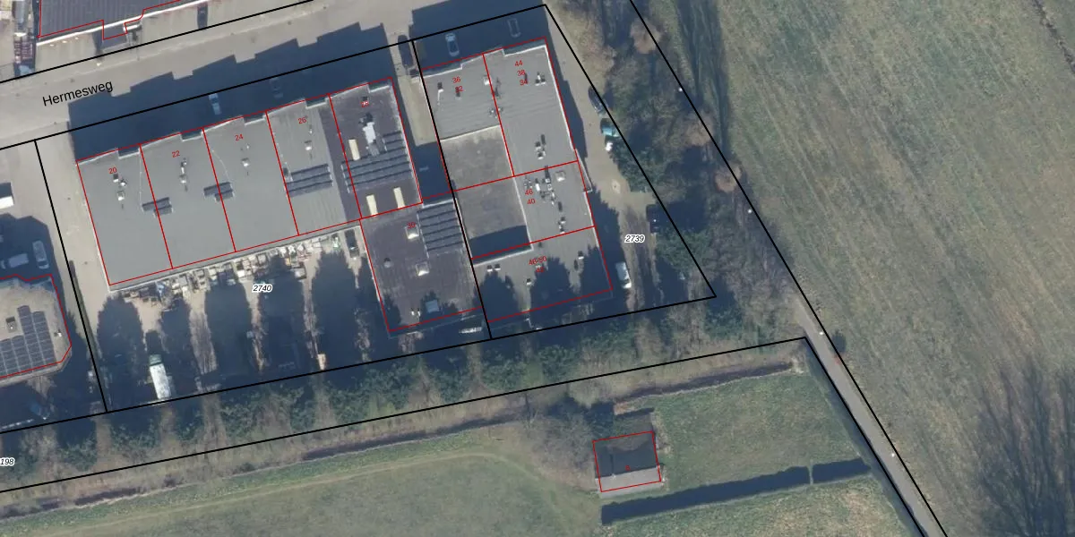 Het perceel waarop Hermesweg 42 staat heeft een oppervlakte van 2000 m². Dit is een zeer groot perceel. De perceeloppervlakte wordt geregistreerd door het Kadaster. Gedetailleerde informatie over de maten van dit perceel kunt u vinden in het rapport Kadastrale kaart met maatvoering van Hermesweg 42.