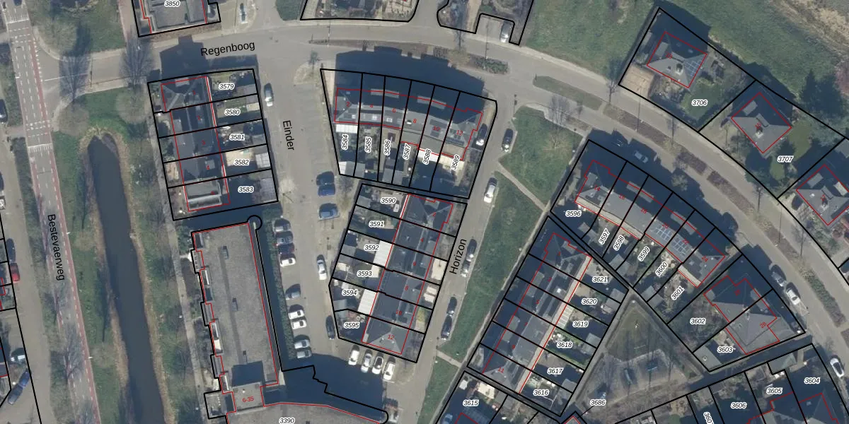 Het perceel waarop Horizon 2 staat heeft een oppervlakte van 168 m². Dit is een middelgroot perceel. De perceeloppervlakte wordt geregistreerd door het Kadaster. Gedetailleerde informatie over de maten van dit perceel kunt u vinden in het rapport Kadastrale kaart met maatvoering van Horizon 2.