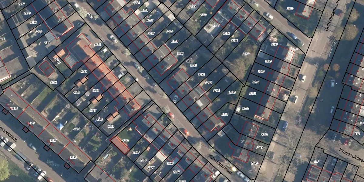 Het perceel waarop Hyacinthstraat 39 staat heeft een oppervlakte van 204 m². Dit is een middelgroot perceel. De perceeloppervlakte wordt geregistreerd door het Kadaster. Gedetailleerde informatie over de maten van dit perceel kunt u vinden in het rapport Kadastrale kaart met maatvoering van Hyacinthstraat 39.