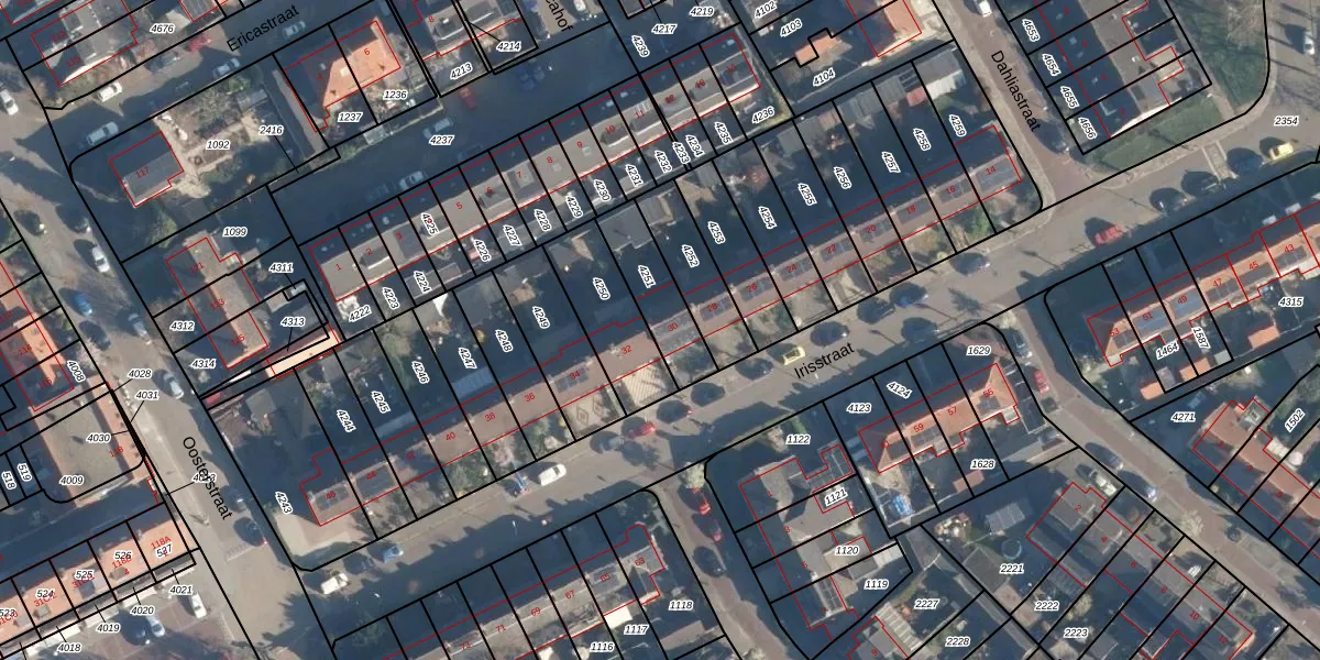 Het perceel waarop Irisstraat 30 staat heeft een oppervlakte van 195 m². Dit is een middelgroot perceel. De perceeloppervlakte wordt geregistreerd door het Kadaster. Gedetailleerde informatie over de maten van dit perceel kunt u vinden in het rapport Kadastrale kaart met maatvoering van Irisstraat 30.