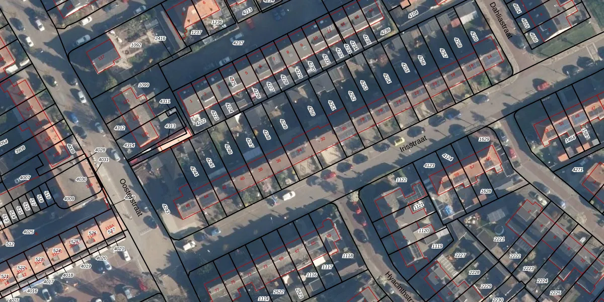 Het perceel waarop Irisstraat 34 staat heeft een oppervlakte van 250 m². Dit is een middelgroot perceel. De perceeloppervlakte wordt geregistreerd door het Kadaster. Gedetailleerde informatie over de maten van dit perceel kunt u vinden in het rapport Kadastrale kaart met maatvoering van Irisstraat 34.