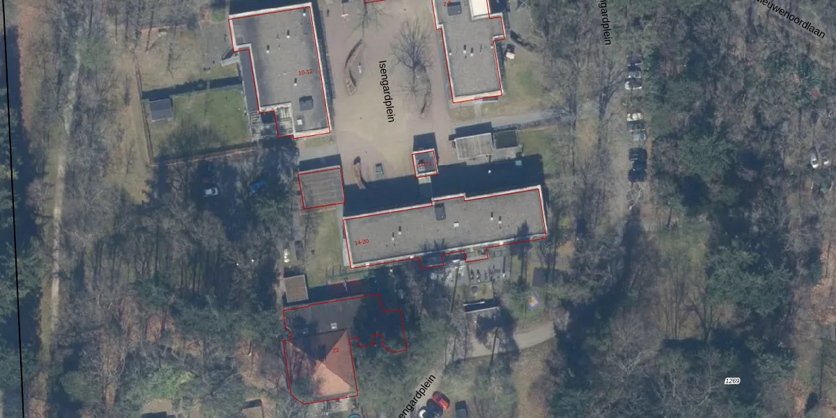 Isengardplein 14 is gelegen op kadastraal perceel BAA01C1269. Deze kadastrale aanduiding is uniek en wordt gebruikt door het Kadaster om eigendomsrechten en andere zakelijke rechten vast te leggen. Het perceel maakt onderdeel uit van de kadastrale gemeente Baarn.