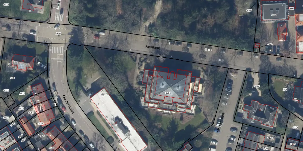 Het perceel waarop Javalaan 20-0001 staat heeft een oppervlakte van 3570 m². Dit is een zeer groot perceel. De perceeloppervlakte wordt geregistreerd door het Kadaster. Gedetailleerde informatie over de maten van dit perceel kunt u vinden in het rapport Kadastrale kaart met maatvoering van Javalaan 20-0001.