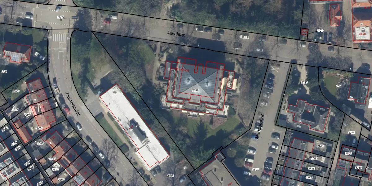 Het perceel waarop Javalaan 20-0012 staat heeft een oppervlakte van 3570 m². Dit is een zeer groot perceel. De perceeloppervlakte wordt geregistreerd door het Kadaster. Gedetailleerde informatie over de maten van dit perceel kunt u vinden in het rapport Kadastrale kaart met maatvoering van Javalaan 20-0012.