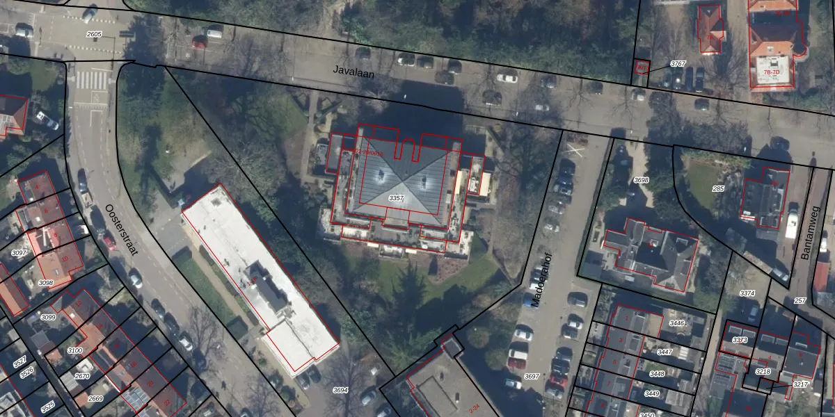 Het perceel waarop Javalaan 20-0013 staat heeft een oppervlakte van 3570 m². Dit is een zeer groot perceel. De perceeloppervlakte wordt geregistreerd door het Kadaster. Gedetailleerde informatie over de maten van dit perceel kunt u vinden in het rapport Kadastrale kaart met maatvoering van Javalaan 20-0013.