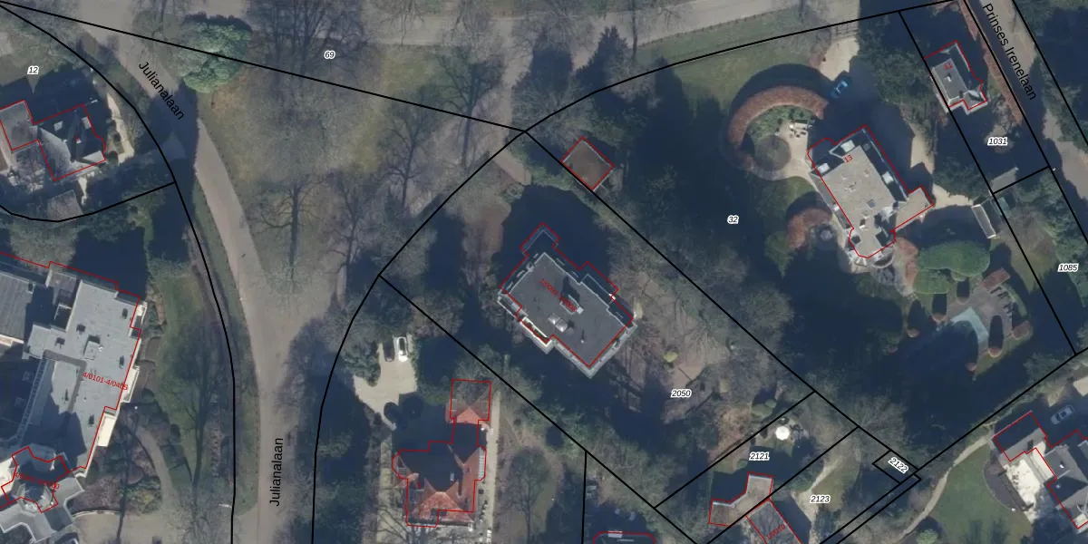 Het perceel waarop Julianalaan 1-0005 staat heeft een oppervlakte van 2540 m². Dit is een zeer groot perceel. De perceeloppervlakte wordt geregistreerd door het Kadaster. Gedetailleerde informatie over de maten van dit perceel kunt u vinden in het rapport Kadastrale kaart met maatvoering van Julianalaan 1-0005.