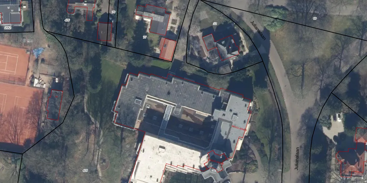 Het perceel waarop Julianalaan 4-0117 staat heeft een oppervlakte van 1,7 ha. Dit is een zeer groot perceel. De perceeloppervlakte wordt geregistreerd door het Kadaster. Gedetailleerde informatie over de maten van dit perceel kunt u vinden in het rapport Kadastrale kaart met maatvoering van Julianalaan 4-0117.