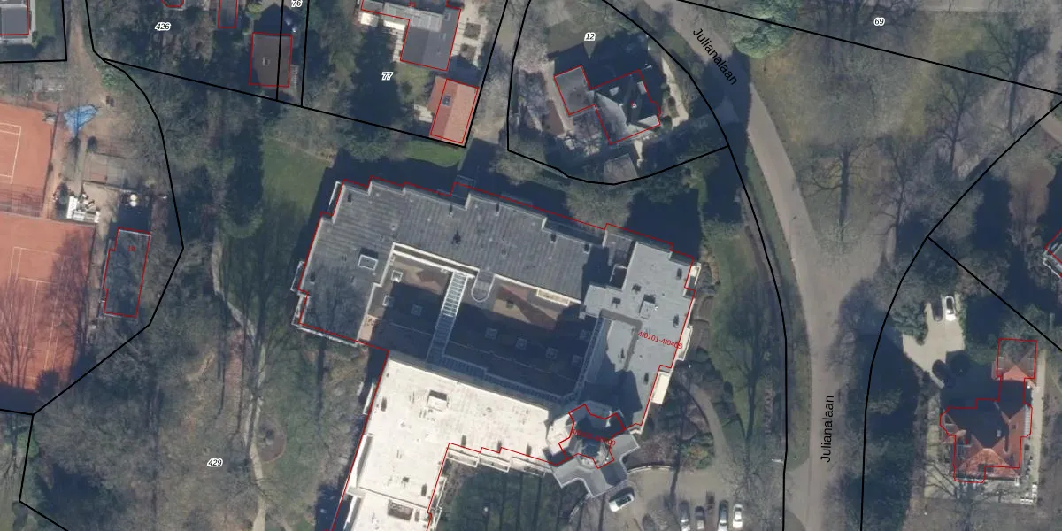 Het perceel waarop Julianalaan 4-0118 staat heeft een oppervlakte van 1,7 ha. Dit is een zeer groot perceel. De perceeloppervlakte wordt geregistreerd door het Kadaster. Gedetailleerde informatie over de maten van dit perceel kunt u vinden in het rapport Kadastrale kaart met maatvoering van Julianalaan 4-0118.