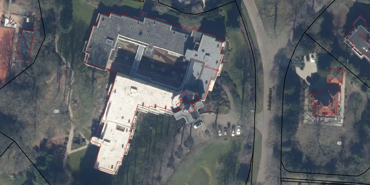 Het perceel waarop Julianalaan 4-0205 staat heeft een oppervlakte van 1,7 ha. Dit is een zeer groot perceel. De perceeloppervlakte wordt geregistreerd door het Kadaster. Gedetailleerde informatie over de maten van dit perceel kunt u vinden in het rapport Kadastrale kaart met maatvoering van Julianalaan 4-0205.