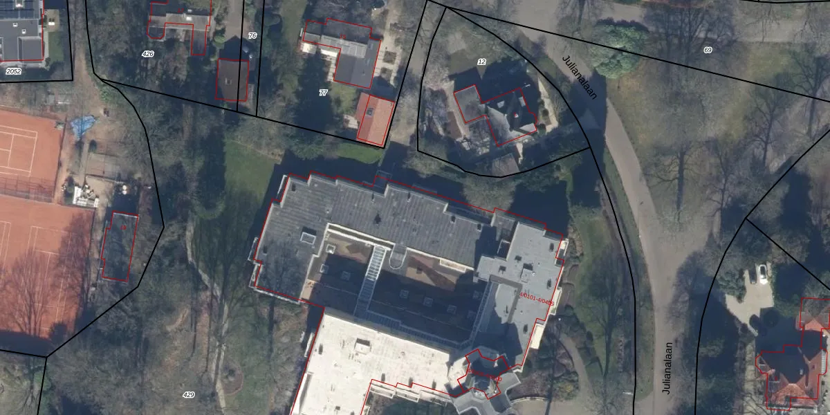 Het perceel waarop Julianalaan 4-0218 staat heeft een oppervlakte van 1,7 ha. Dit is een zeer groot perceel. De perceeloppervlakte wordt geregistreerd door het Kadaster. Gedetailleerde informatie over de maten van dit perceel kunt u vinden in het rapport Kadastrale kaart met maatvoering van Julianalaan 4-0218.