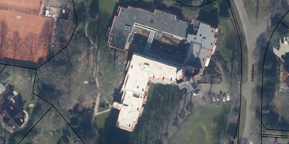 Het perceel waarop Julianalaan 4-0307 staat heeft een oppervlakte van 1,7 ha. Dit is een zeer groot perceel. De perceeloppervlakte wordt geregistreerd door het Kadaster. Gedetailleerde informatie over de maten van dit perceel kunt u vinden in het rapport Kadastrale kaart met maatvoering van Julianalaan 4-0307.