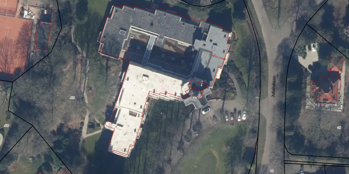 Het perceel waarop Julianalaan 4-0105 staat heeft een oppervlakte van 1,7 ha. Dit is een zeer groot perceel. De perceeloppervlakte wordt geregistreerd door het Kadaster. Gedetailleerde informatie over de maten van dit perceel kunt u vinden in het rapport Kadastrale kaart met maatvoering van Julianalaan 4-0105.