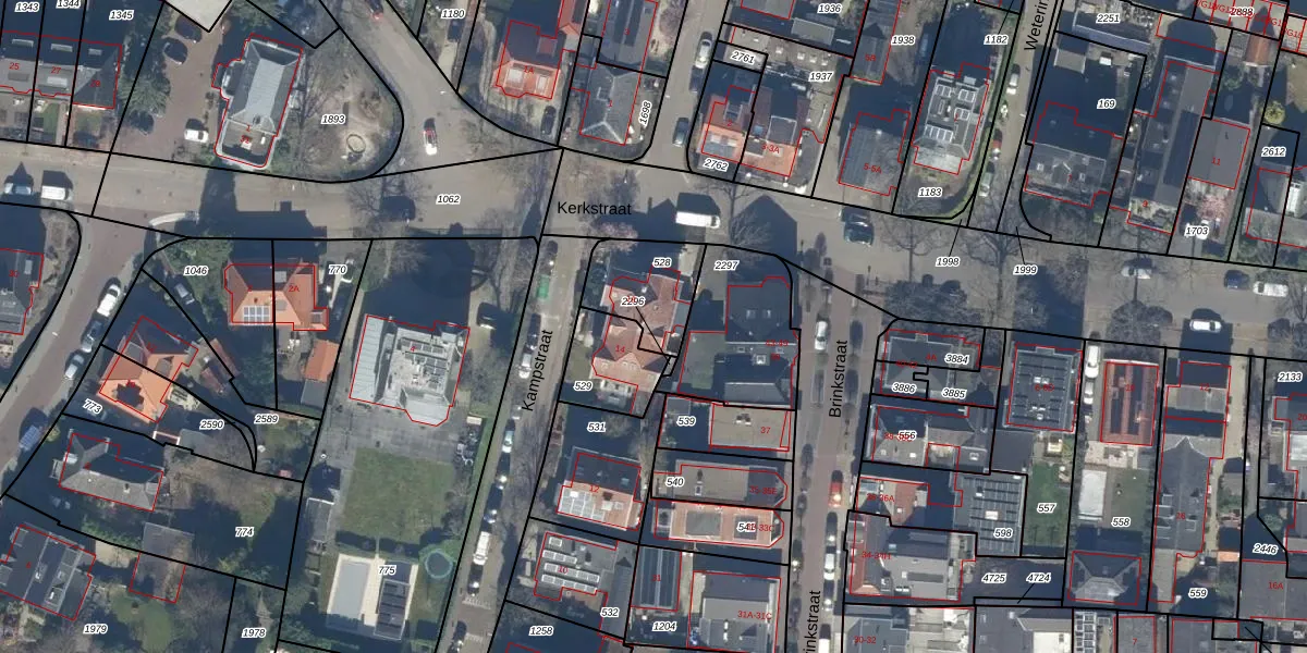 Kampstraat 16 is gelegen op kadastraal perceel BAA01M528. Deze kadastrale aanduiding is uniek en wordt gebruikt door het Kadaster om eigendomsrechten en andere zakelijke rechten vast te leggen. Het perceel maakt onderdeel uit van de kadastrale gemeente Baarn.