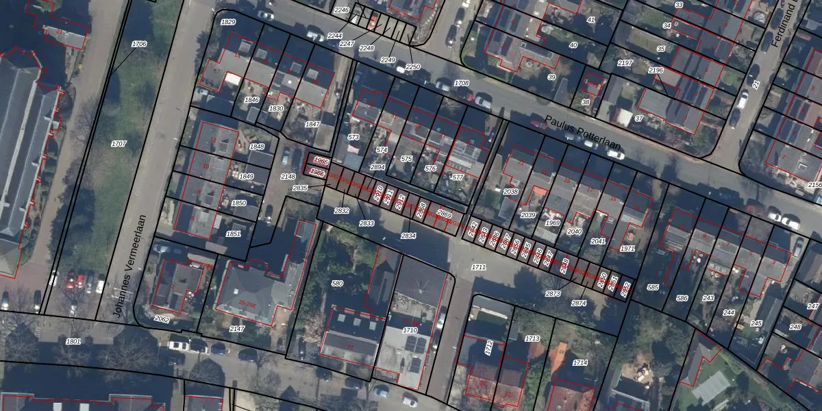 Het perceel waarop het adres ligt is BAA01-H-2834. De afkorting 'BAA01' staat voor kadastrale gemeente Baarn. De gemiddelde perceelgrootte in Baarn is 3286,16 m². Dit perceel is kleiner: de perceeloppervlakte bedraagt 18 m². Het grootste perceel in de kadastrale gemeente is 84,4 ha. Het kleinste perceel heeft een oppervlakte van 0 m². Er zijn geen andere adressen aanwezig op het perceel. In de Basisregistratie Kadaster (BRK) werden de grenzen van het perceel geregistreerd op 23-11-2005.