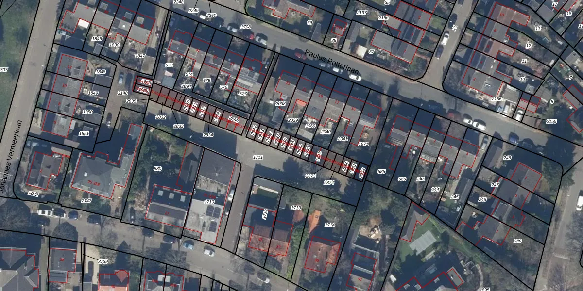 Het perceel waarop het adres ligt is BAA01-H-2845. De afkorting 'BAA01' staat voor kadastrale gemeente Baarn. De gemiddelde perceelgrootte in Baarn is 3285,84 m². Dit perceel is kleiner: de perceeloppervlakte bedraagt 17 m². Het kleinste perceel in de kadastrale gemeente is 0 m² groot. De grootste perceeloppervlakte is 84,4 ha. Op het perceel bevinden zich geen andere adressen. In de Basisregistratie Kadaster (BRK) werden de grenzen van het perceel geregistreerd op 16-04-2003.