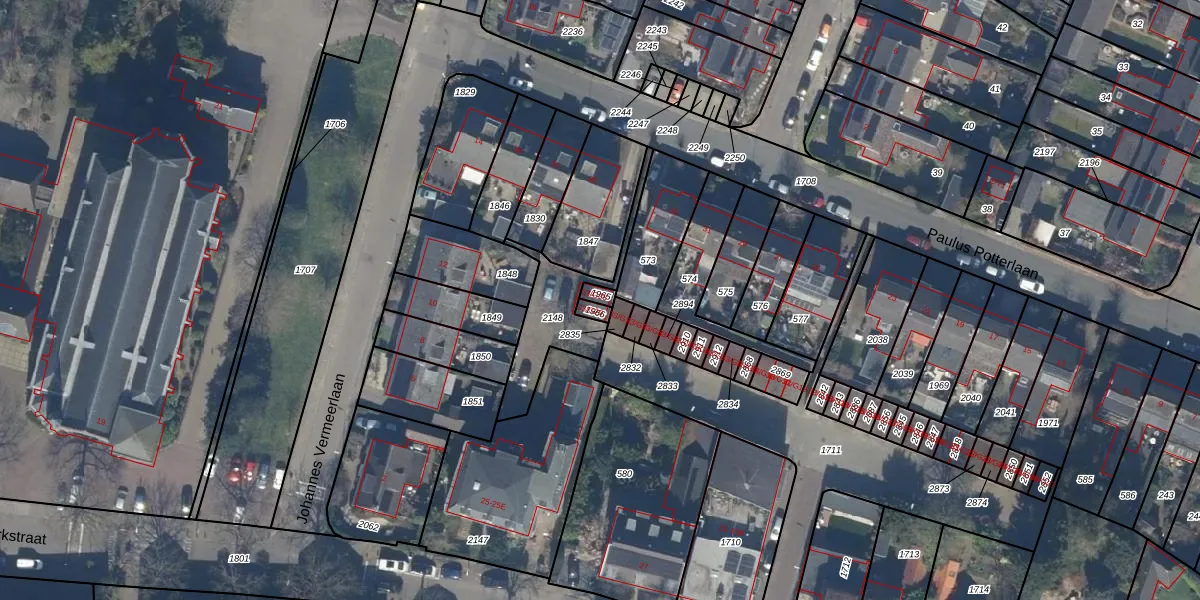 Gebruik de zoekbalk of klik op een perceel voor informatie over de adressen binnen dit perceel.