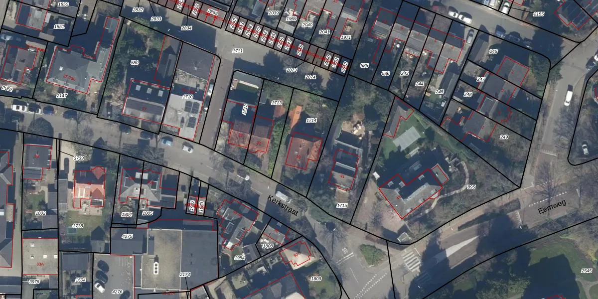 Kerkstraat 39 is gelegen op kadastraal perceel BAA01H1714. Deze kadastrale aanduiding is uniek en wordt gebruikt door het Kadaster om eigendomsrechten en andere zakelijke rechten vast te leggen. Het perceel maakt onderdeel uit van de kadastrale gemeente Baarn.