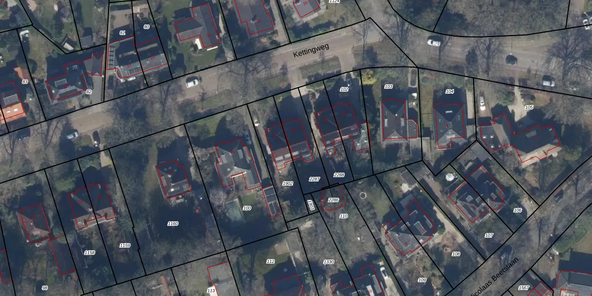Kettingweg 33 is gelegen op kadastraal perceel BAA01L2287. Deze kadastrale aanduiding is uniek en wordt gebruikt door het Kadaster om eigendomsrechten en andere zakelijke rechten vast te leggen. Het perceel maakt onderdeel uit van de kadastrale gemeente Baarn.