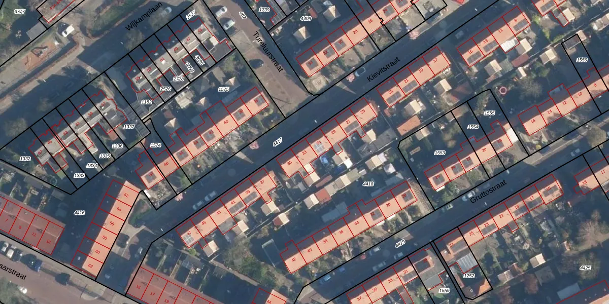 Het perceel waarop Kievitstraat 33 staat heeft een oppervlakte van 7400 m². Dit is een zeer groot perceel. De perceeloppervlakte wordt geregistreerd door het Kadaster. Gedetailleerde informatie over de maten van dit perceel kunt u vinden in het rapport Kadastrale kaart met maatvoering van Kievitstraat 33.