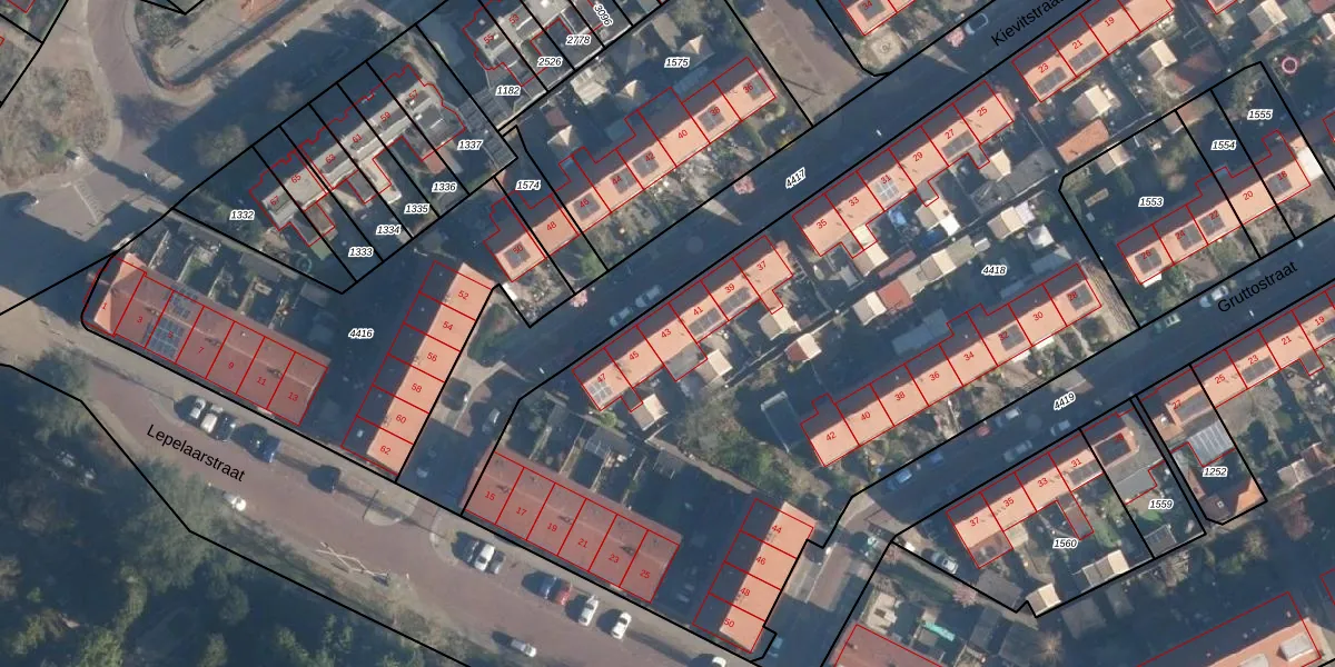 Het perceel waarop Kievitstraat 43 staat heeft een oppervlakte van 7400 m². Dit is een zeer groot perceel. De perceeloppervlakte wordt geregistreerd door het Kadaster. Gedetailleerde informatie over de maten van dit perceel kunt u vinden in het rapport Kadastrale kaart met maatvoering van Kievitstraat 43.