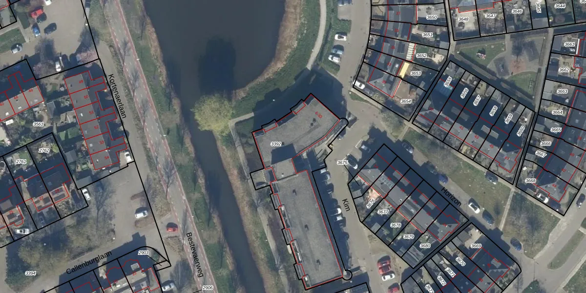 Het perceel waarop Kim 13 staat heeft een oppervlakte van 1195 m². Dit is een zeer groot perceel. De perceeloppervlakte wordt geregistreerd door het Kadaster. Gedetailleerde informatie over de maten van dit perceel kunt u vinden in het rapport Kadastrale kaart met maatvoering van Kim 13.