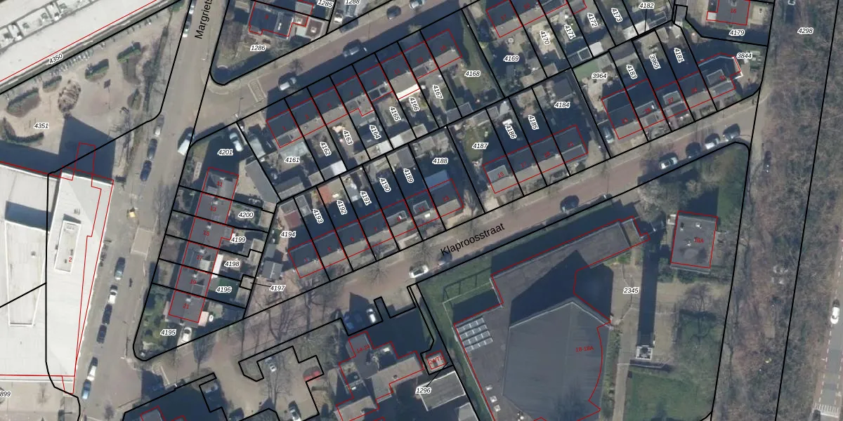 Gebruik de zoekbalk of klik op een perceel voor informatie over de adressen binnen dit perceel.