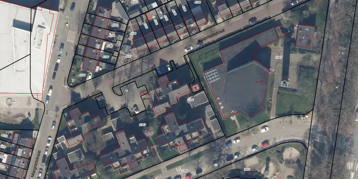 Klaproosstraat 18 is gelegen op kadastraal perceel BAA01M2343. Deze kadastrale aanduiding is uniek en wordt gebruikt door het Kadaster om eigendomsrechten en andere zakelijke rechten vast te leggen. Het perceel maakt onderdeel uit van de kadastrale gemeente Baarn.