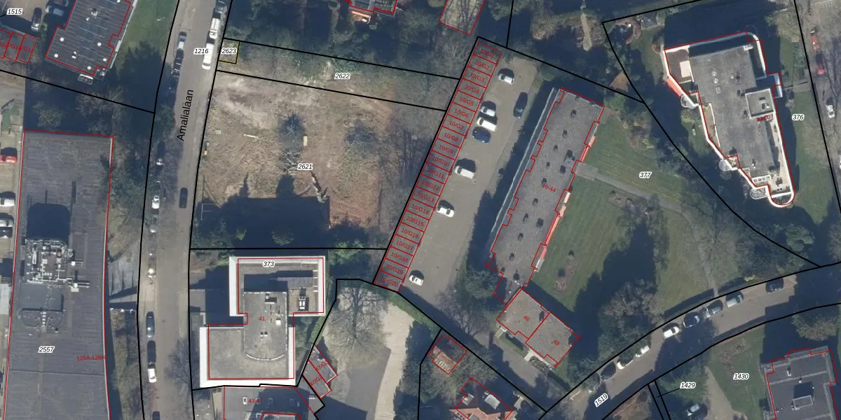Het perceel waarop Koningsweg 10-G14 staat heeft een oppervlakte van 4780 m². Dit is een zeer groot perceel. De perceeloppervlakte wordt geregistreerd door het Kadaster. Gedetailleerde informatie over de maten van dit perceel kunt u vinden in het rapport Kadastrale kaart met maatvoering van Koningsweg 10-G14.