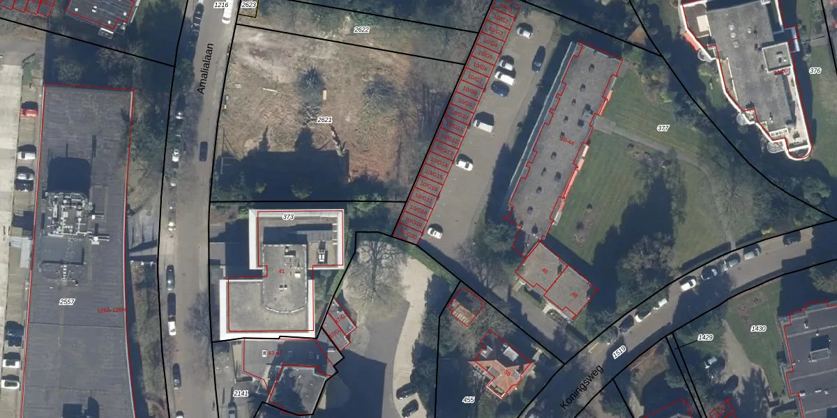 Het perceel waarop Koningsweg 10-G18 staat heeft een oppervlakte van 4780 m². Dit is een zeer groot perceel. De perceeloppervlakte wordt geregistreerd door het Kadaster. Gedetailleerde informatie over de maten van dit perceel kunt u vinden in het rapport Kadastrale kaart met maatvoering van Koningsweg 10-G18.