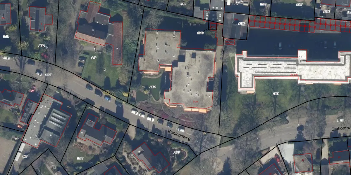 Het perceel waarop Koningsweg 2-0007 staat heeft een oppervlakte van 3078 m². Dit is een zeer groot perceel. De perceeloppervlakte wordt geregistreerd door het Kadaster. Gedetailleerde informatie over de maten van dit perceel kunt u vinden in het rapport Kadastrale kaart met maatvoering van Koningsweg 2-0007.