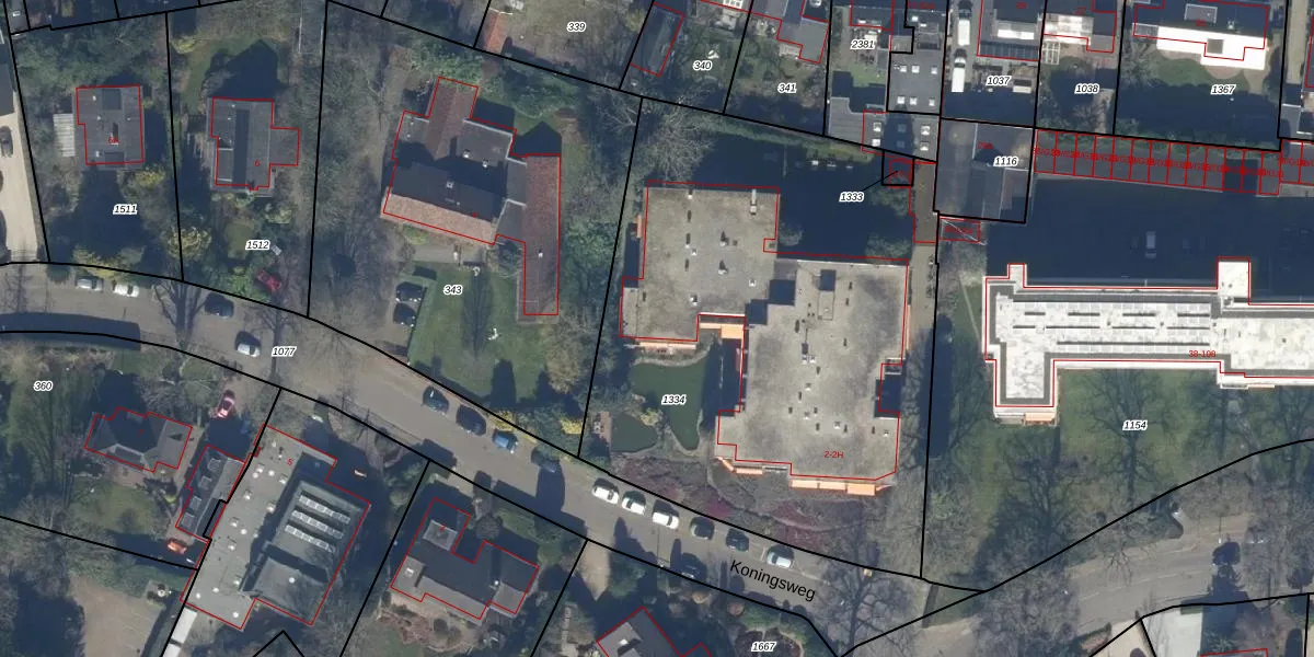 Het perceel waarop Koningsweg 2-0061 staat heeft een oppervlakte van 3078 m². Dit is een zeer groot perceel. De perceeloppervlakte wordt geregistreerd door het Kadaster. Gedetailleerde informatie over de maten van dit perceel kunt u vinden in het rapport Kadastrale kaart met maatvoering van Koningsweg 2-0061.