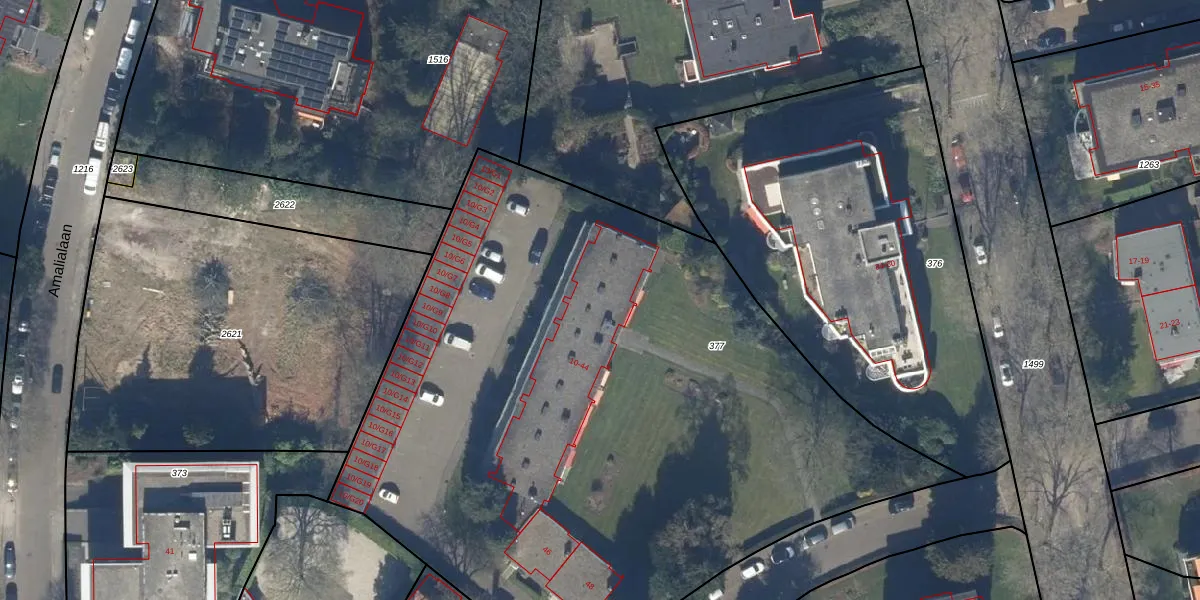 Het adres ligt op het perceel BAA01-L-377, dat zich in de kadastrale gemeente Baarn bevindt. De gemiddelde perceeloppervlakte in de kadastrale gemeente Baarn is 3282,57 m². Dit perceel is met zijn 4780 m² dus groter dan gemiddeld. Het grootste perceel in de kadastrale gemeente is 84,4 ha. Het kleinste perceel heeft een oppervlakte van 0 m². Op het perceel zijn 40 adressen aanwezig. In de Basisregistratie Kadaster (BRK) werden de grenzen van het perceel geregistreerd op 13-02-2001.