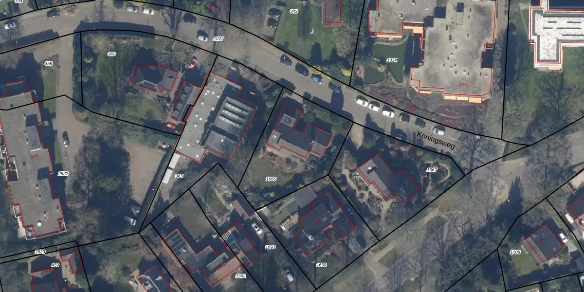 Het perceel waarop Koningsweg 3 staat heeft een oppervlakte van 905 m². Dit is een groot perceel. De perceeloppervlakte wordt geregistreerd door het Kadaster. Gedetailleerde informatie over de maten van dit perceel kunt u vinden in het rapport Kadastrale kaart met maatvoering van Koningsweg 3.
