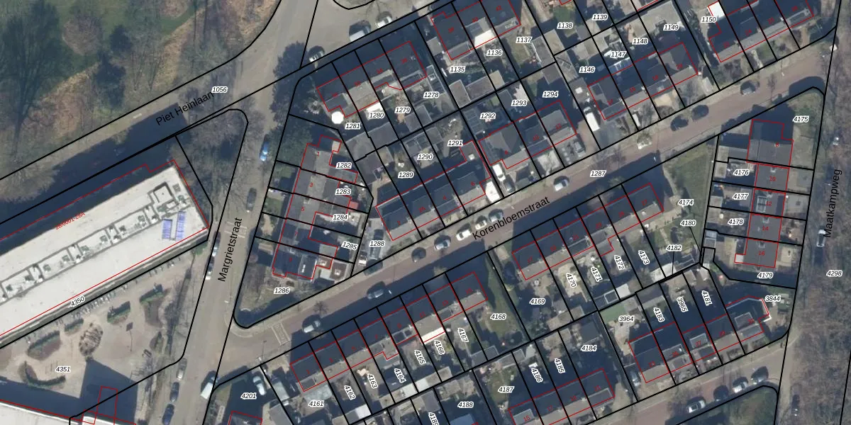 Gebruik de zoekbalk of klik op een perceel voor informatie over de adressen binnen dit perceel.