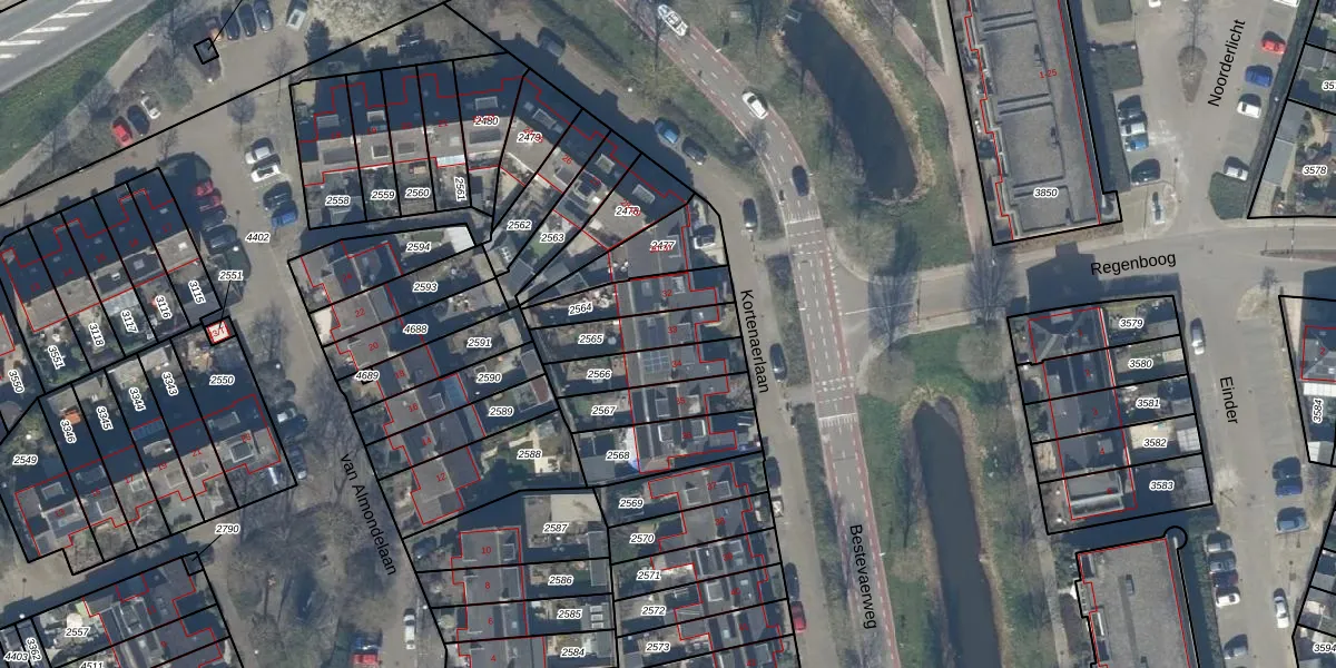 Kortenaerlaan 33 is gelegen op kadastraal perceel BAA01M2565. Deze kadastrale aanduiding is uniek en wordt gebruikt door het Kadaster om eigendomsrechten en andere zakelijke rechten vast te leggen. Het perceel maakt onderdeel uit van de kadastrale gemeente Baarn.