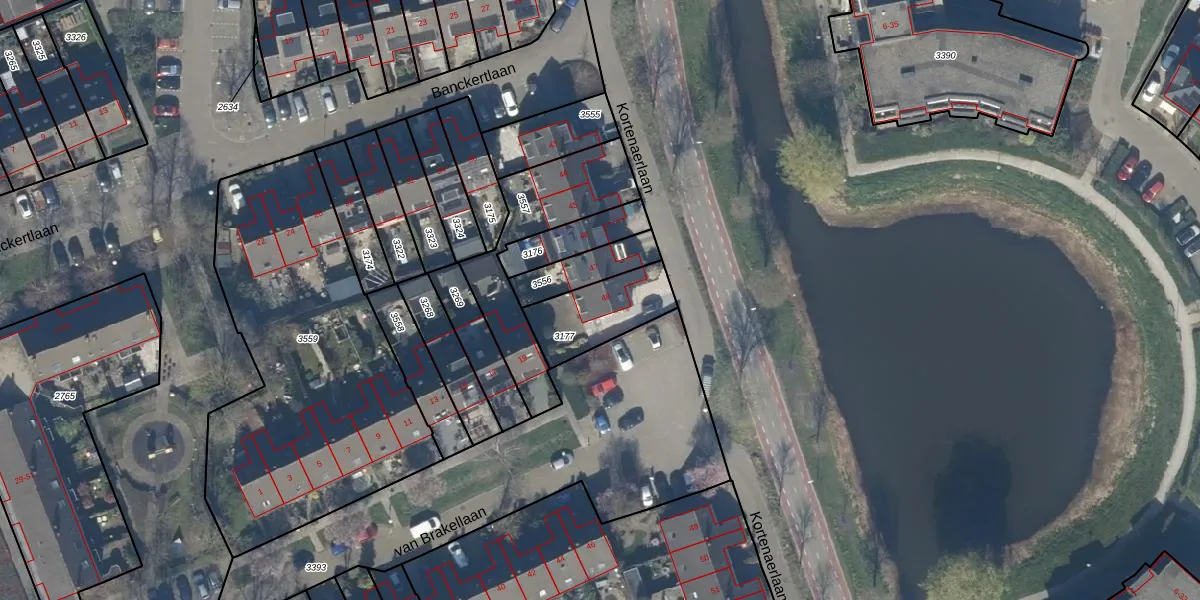 Kortenaerlaan 48 is gelegen op kadastraal perceel BAA01M3177. Deze kadastrale aanduiding is uniek en wordt gebruikt door het Kadaster om eigendomsrechten en andere zakelijke rechten vast te leggen. Het perceel maakt onderdeel uit van de kadastrale gemeente Baarn.