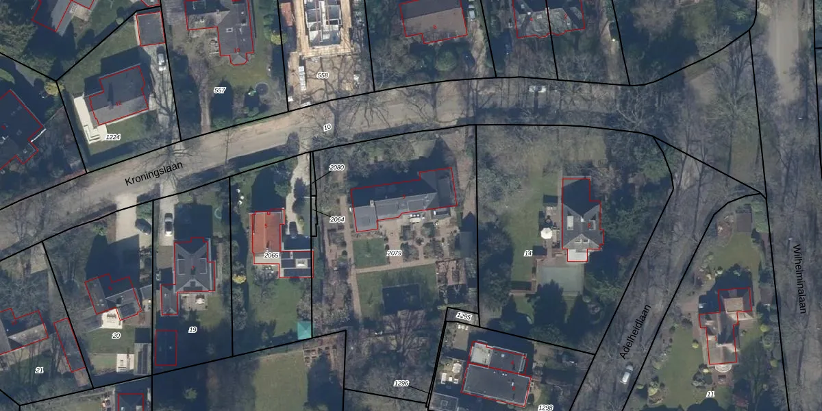 Het perceel waarop Kroningslaan 3 staat heeft een oppervlakte van 2206 m². Dit is een zeer groot perceel. De perceeloppervlakte wordt geregistreerd door het Kadaster. Gedetailleerde informatie over de maten van dit perceel kunt u vinden in het rapport Kadastrale kaart met maatvoering van Kroningslaan 3.