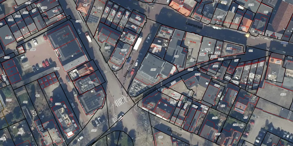 Het perceel waarop Laandwarsstraat 12 staat heeft een oppervlakte van 529 m². Dit is een groot perceel. De perceeloppervlakte wordt geregistreerd door het Kadaster. Gedetailleerde informatie over de maten van dit perceel kunt u vinden in het rapport Kadastrale kaart met maatvoering van Laandwarsstraat 12.