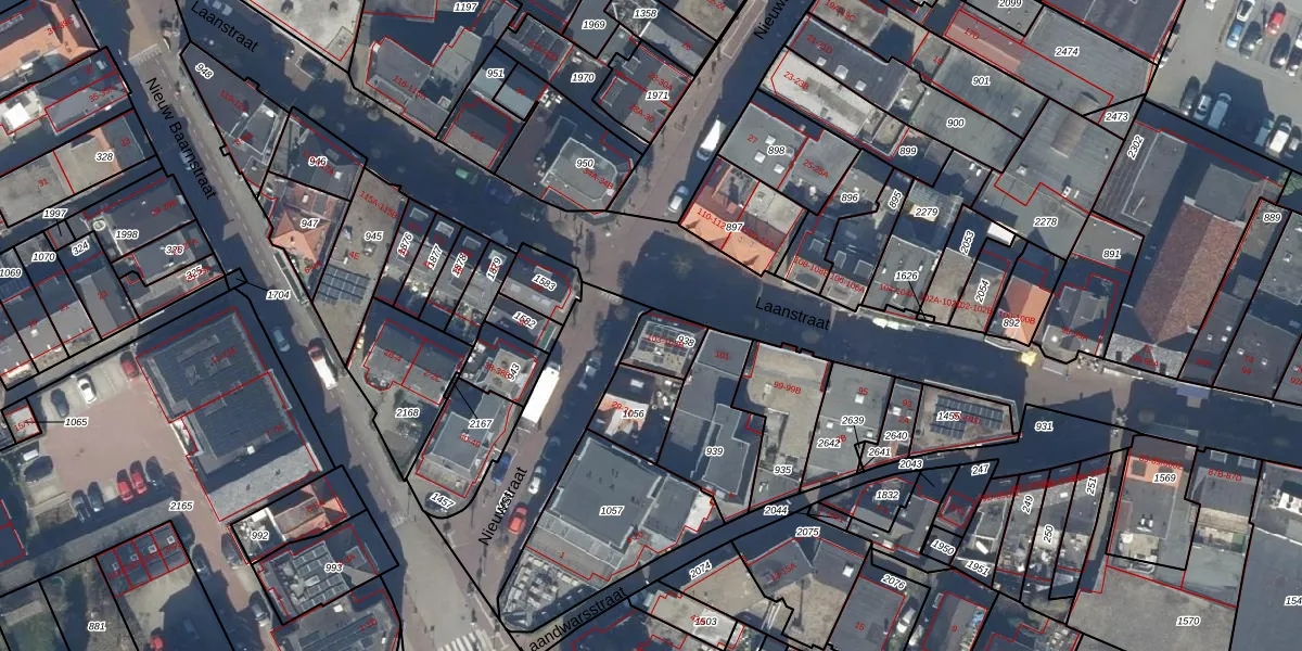 Laanstraat 103 is gelegen op kadastraal perceel BAA01L938. Deze kadastrale aanduiding is uniek en wordt gebruikt door het Kadaster om eigendomsrechten en andere zakelijke rechten vast te leggen. Het perceel maakt onderdeel uit van de kadastrale gemeente Baarn.