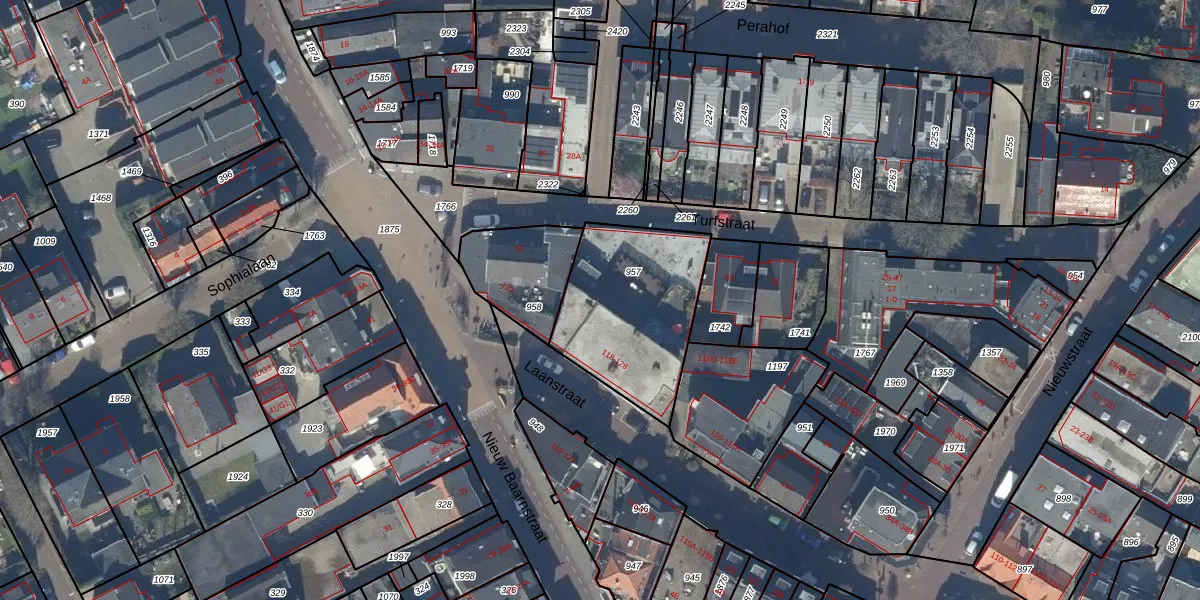 Laanstraat 128 is gelegen op kadastraal perceel BAA01L957. Deze kadastrale aanduiding is uniek en wordt gebruikt door het Kadaster om eigendomsrechten en andere zakelijke rechten vast te leggen. Het perceel maakt onderdeel uit van de kadastrale gemeente Baarn.