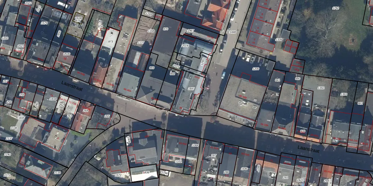 Laanstraat 38 is gelegen op kadastraal perceel BAA01L1447. Deze kadastrale aanduiding is uniek en wordt gebruikt door het Kadaster om eigendomsrechten en andere zakelijke rechten vast te leggen. Het perceel maakt onderdeel uit van de kadastrale gemeente Baarn.