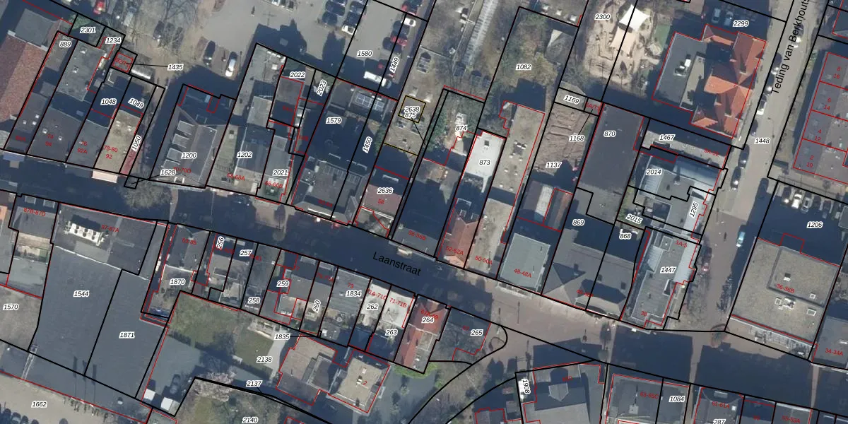Het perceel waarop Laanstraat 56-A staat heeft een oppervlakte van 389 m². Dit is een groot perceel. De perceeloppervlakte wordt geregistreerd door het Kadaster. Gedetailleerde informatie over de maten van dit perceel kunt u vinden in het rapport Kadastrale kaart met maatvoering van Laanstraat 56-A.