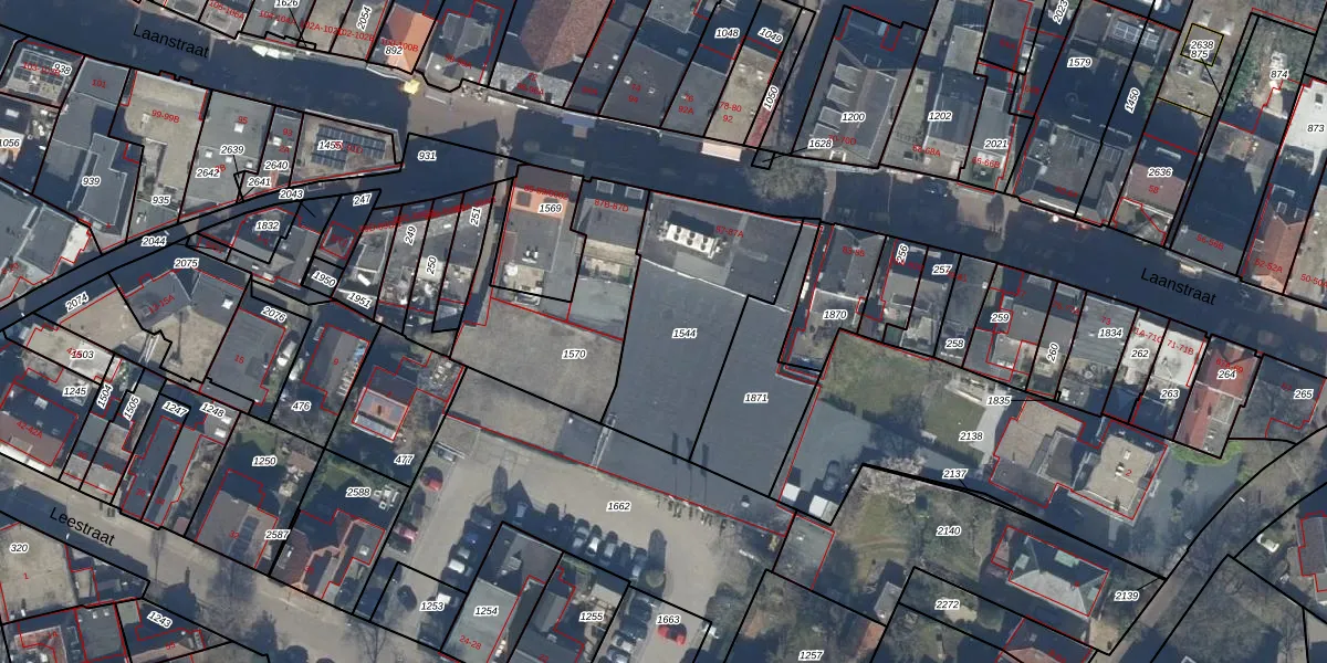 Het perceel waarop Laanstraat 87 staat heeft een oppervlakte van 671 m². Dit is een groot perceel. De perceeloppervlakte wordt geregistreerd door het Kadaster. Gedetailleerde informatie over de maten van dit perceel kunt u vinden in het rapport Kadastrale kaart met maatvoering van Laanstraat 87.