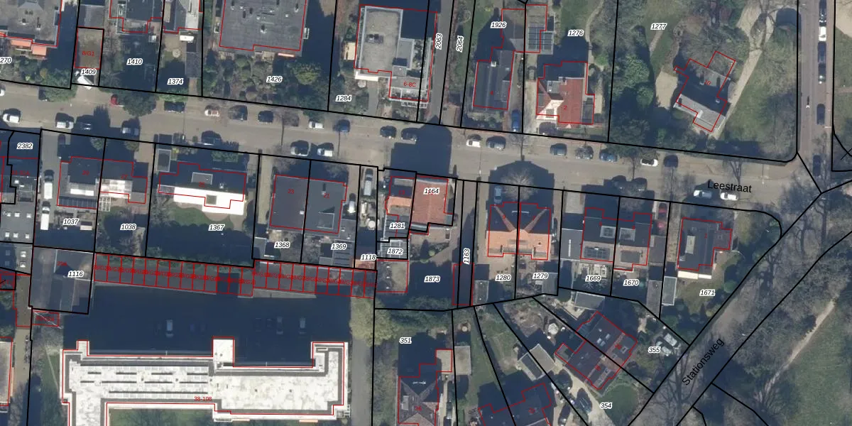 Het perceel waarop Leestraat 11 staat heeft een oppervlakte van 121 m². Dit is een middelgroot perceel. De perceeloppervlakte wordt geregistreerd door het Kadaster. Gedetailleerde informatie over de maten van dit perceel kunt u vinden in het rapport Kadastrale kaart met maatvoering van Leestraat 11.