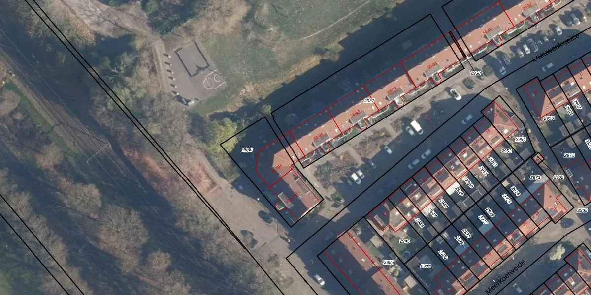 Leeuwerikweide 96 is gelegen op kadastraal perceel BAA01M2937. Deze kadastrale aanduiding is uniek en wordt gebruikt door het Kadaster om eigendomsrechten en andere zakelijke rechten vast te leggen. Het perceel maakt onderdeel uit van de kadastrale gemeente Baarn.