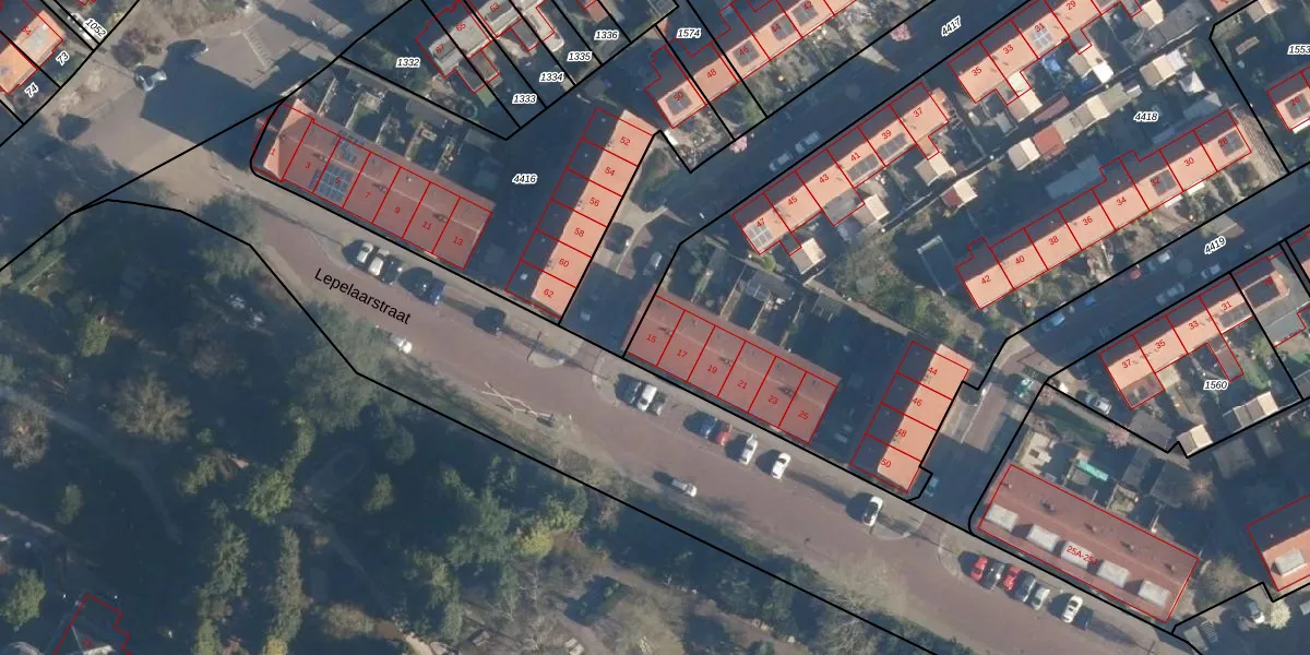 Lepelaarstraat 15 is gelegen op kadastraal perceel BAA01M4418. Deze kadastrale aanduiding is uniek en wordt gebruikt door het Kadaster om eigendomsrechten en andere zakelijke rechten vast te leggen. Het perceel maakt onderdeel uit van de kadastrale gemeente Baarn.
